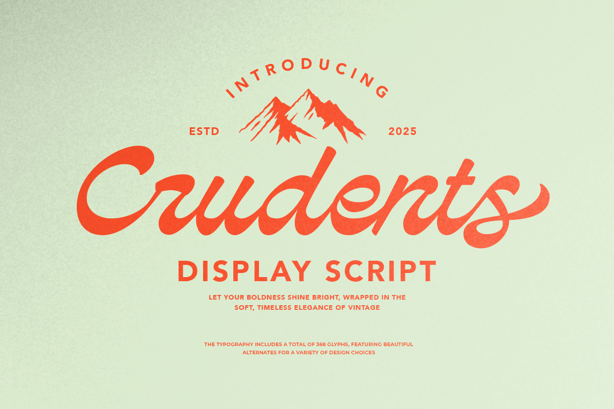Crudents is a bold display script with slightly reverse contrast looks. You can use this font for many purposes such as logotype, quotes, branding, or your wedding invitations. With the retro and vintage looks, this font also suitable for old poster themes. Crudents also have many alternates and underline that you can use to make your project more stunning. This font also support multi language.