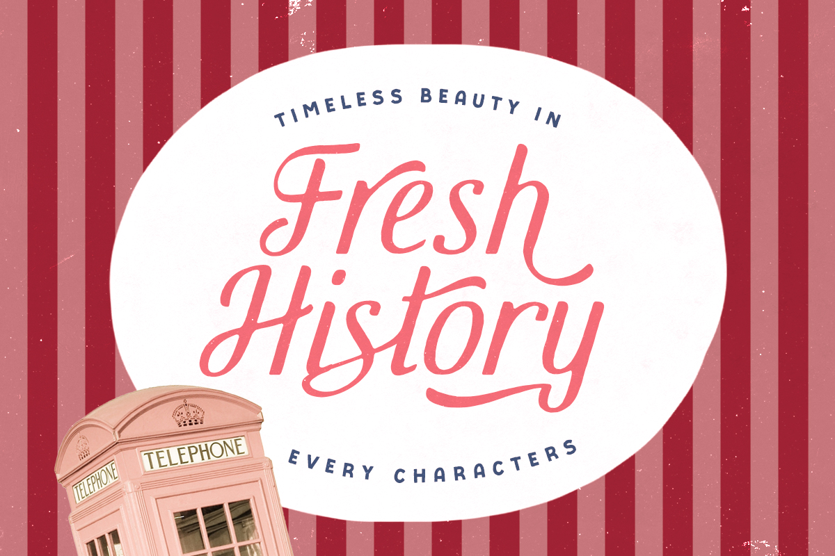 Fresh History is a charming hand-lettered script filled with a beautiful collection of stylish alternates. Each alternate helps you create designs that feel more expressive, unique, and truly stand out. Perfect for branding, logotypes, retro posters, wedding invitations, and more, this script brings a warm and nostalgic touch to any project. It’s also a delightful choice for holiday-themed designs, adding a cute and festive feel to your seasonal branding. Complete with multilingual support, Fresh History is both versatile and inspiring for all your creative needs.