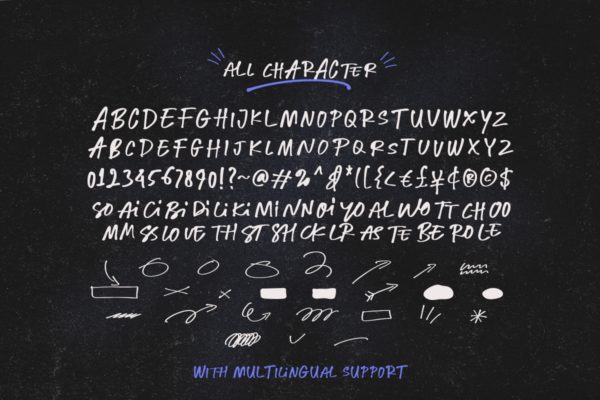 Messy Binder is a stylish and organic handwritten all caps font. With bunch of ligatures, this font will make your design more looks naturally handwritten. You can use this font for any purposes such as quote, branding, caption, and any project that require messy looks. Messy Binder also included scribble that you can use to add the messiness. This font also support multi language.