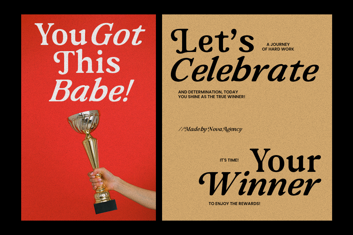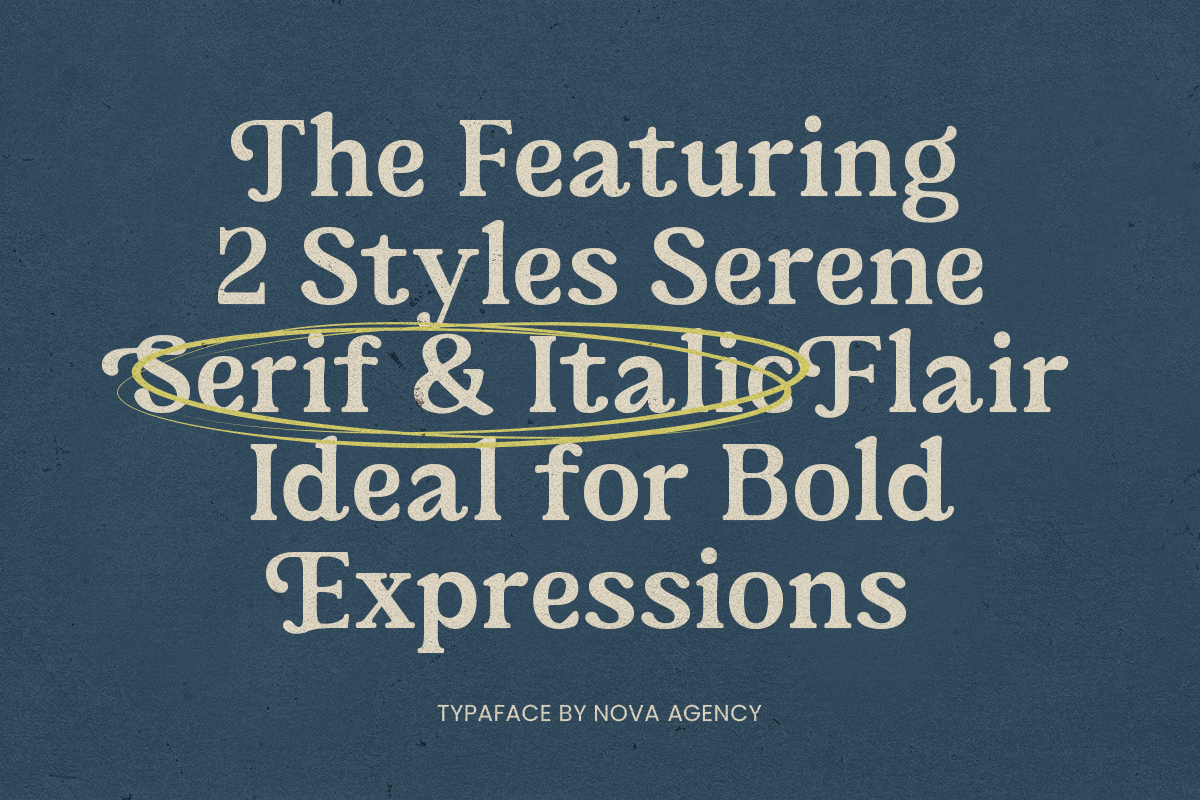 Nova Agency is a serif font family with retro and bold looks. With italic that will complement the regular style, you can use this font for any purposes such as branding, quote, wedding, logotype or any designs that need retro vibes. This font also contains an alternate each uppercase that will make your project looks stunning. Nova Agency also support multi language.