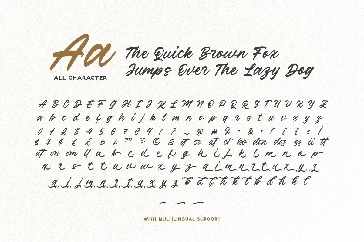 Verdons Wild is a vintage brush script with bunch of alternates and ligatures. You can use this font for any occasion such as logotype, branding, quotes, wedding, or any project with outdoor and adventure theme. With the alternates, you can create even more stunning design and project. This font also support multi language.