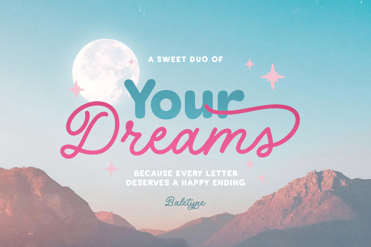 Your Dreams is a soft font duo that have bold rounded sans and curly monoline script.